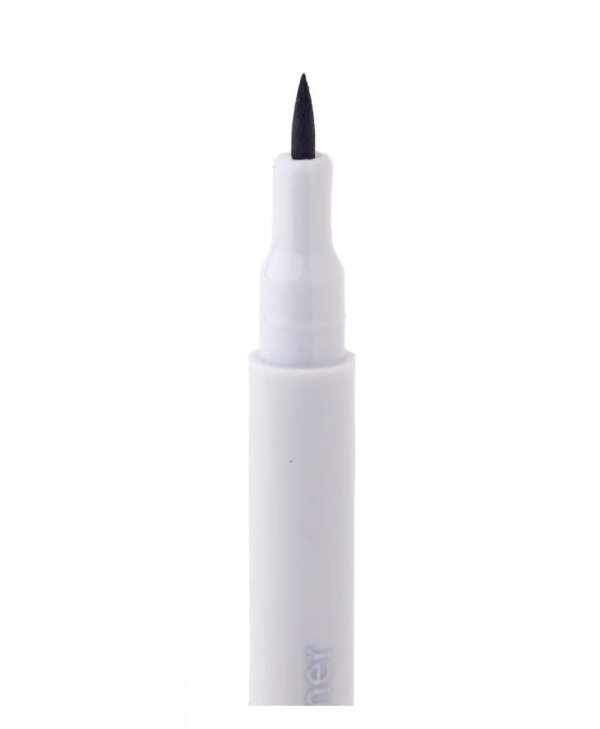 Delineador líquido con aplicador de fibra y pigmento negro intenso. Resistente al agua y de secado rápido, no mancha ni transfiere.